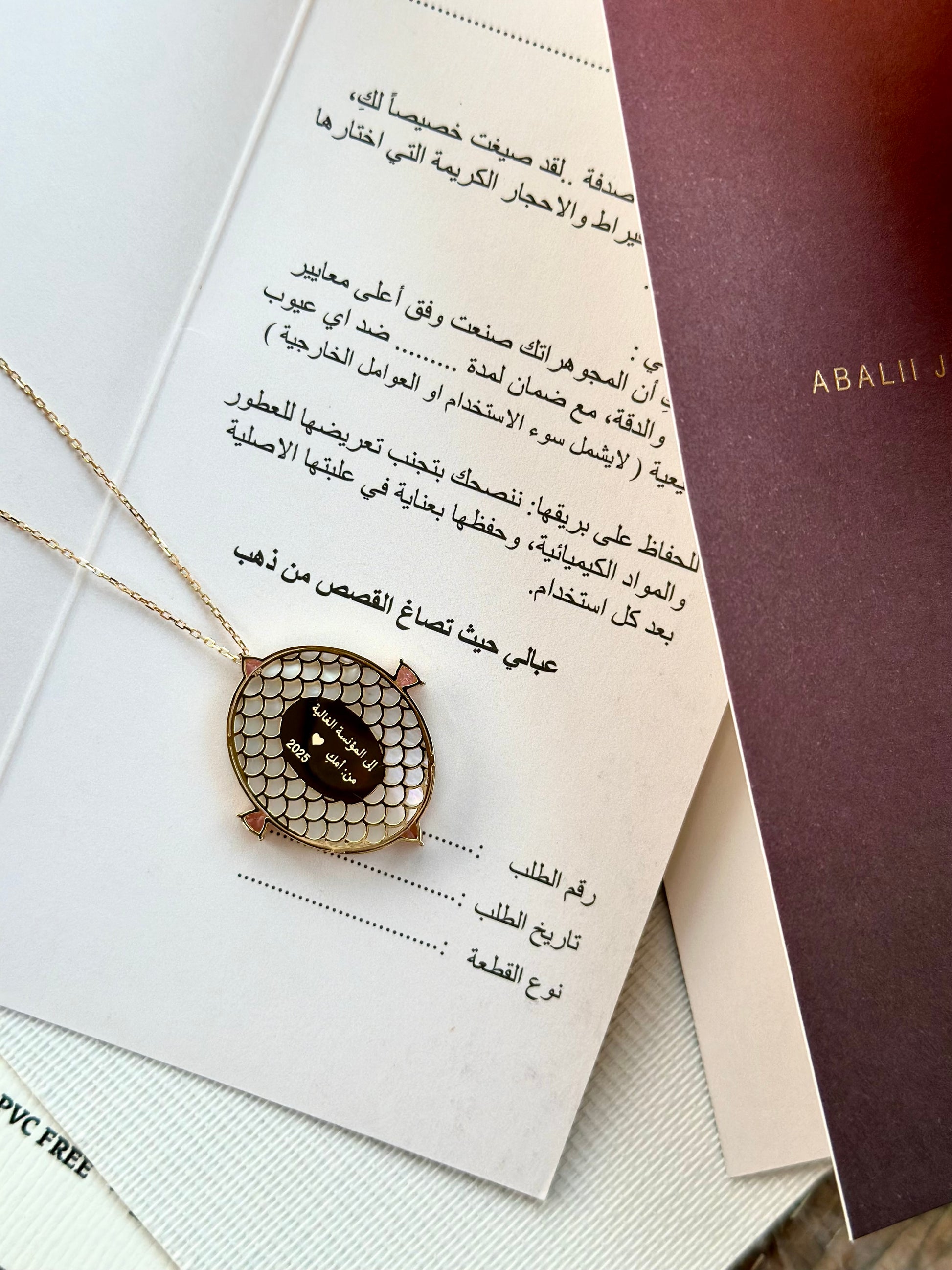 في الخلف، تُنحت رسالة سرّية بالذهب تبقى قريبة من قلبكِ♥️
